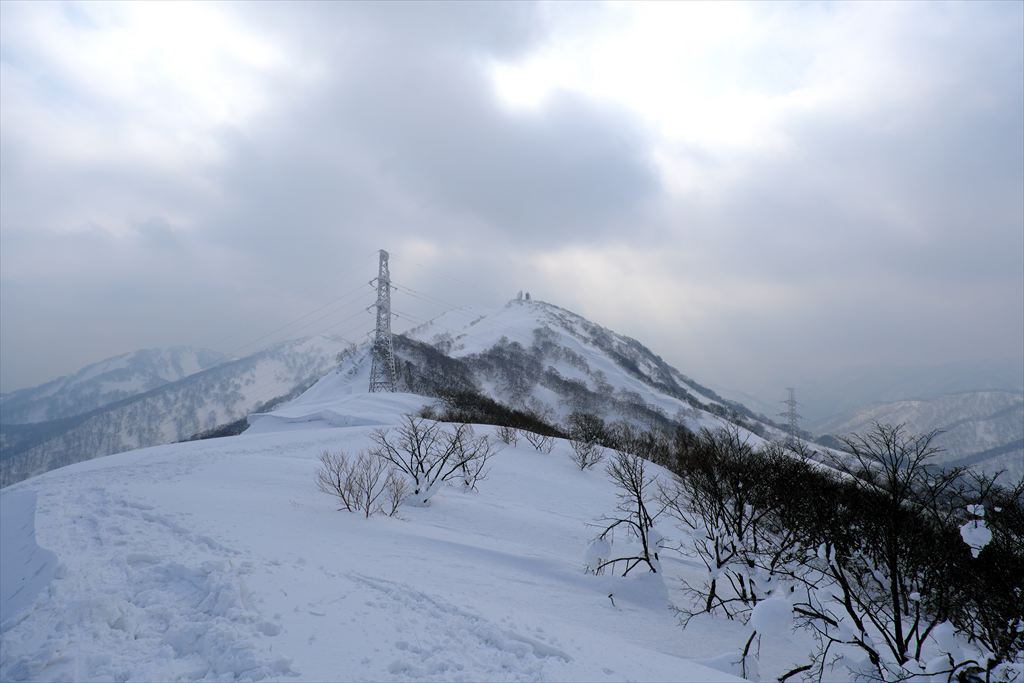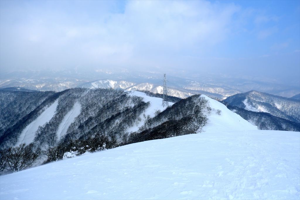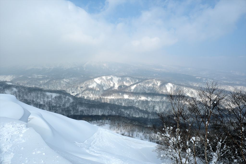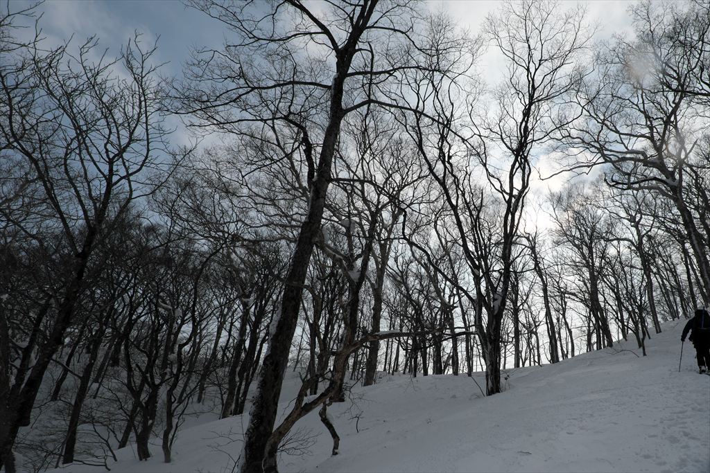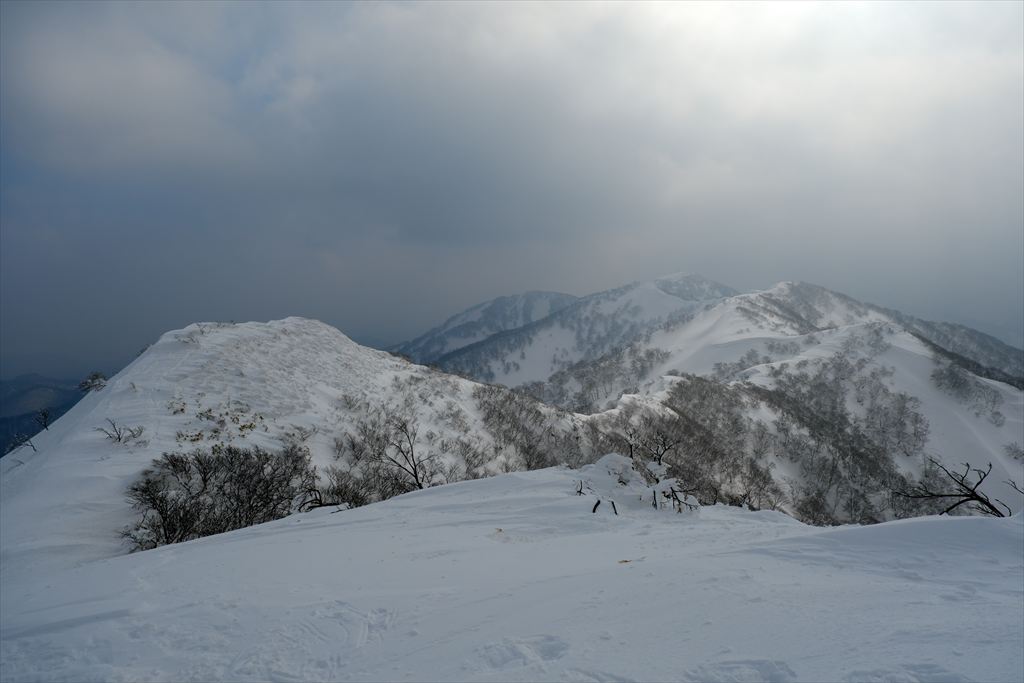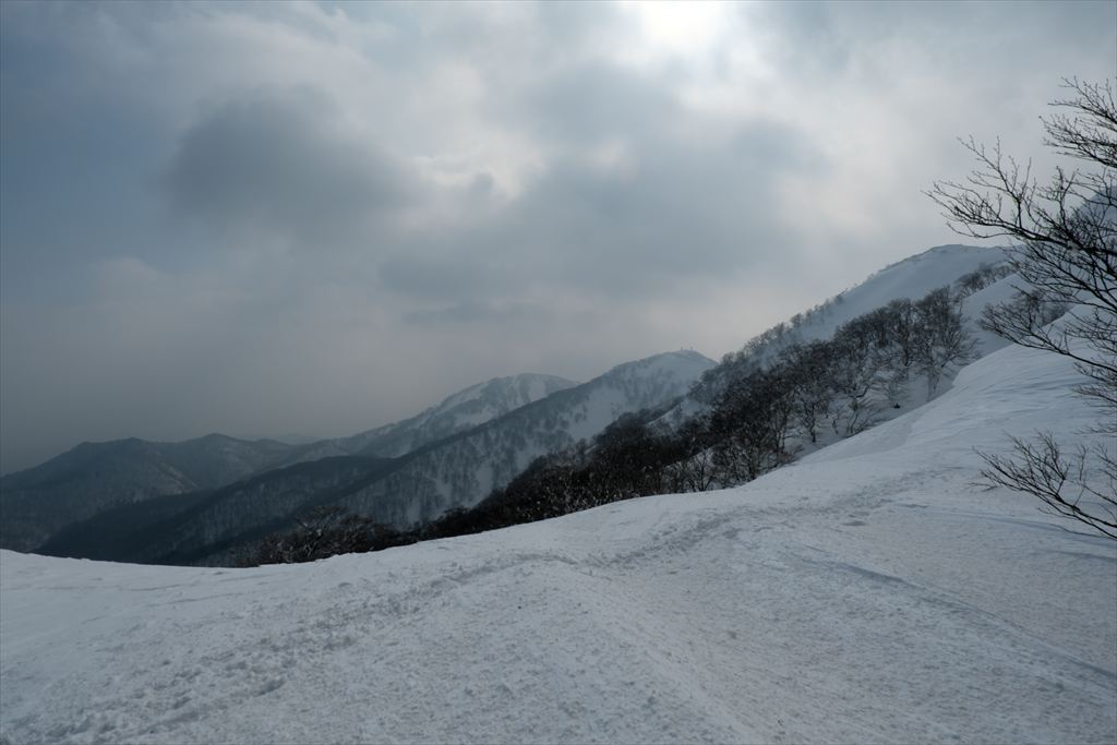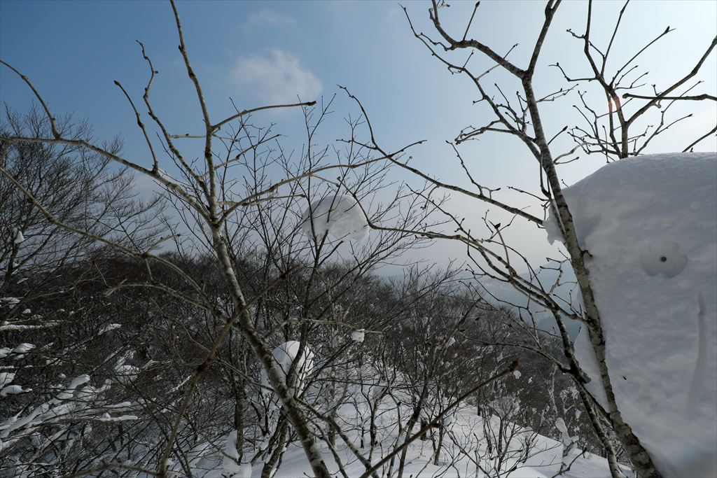 スノーボードの方々は仙岩峠の稜線に出たところから滑っていきましたので、私は反対側の稜線を歩いて貝吹岳へ。
