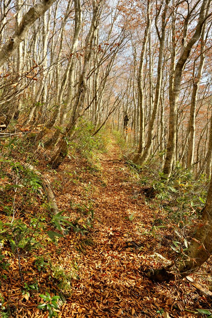 最初はクマが怖くてビビりながら登ってきたのですが,ブナなどの枯れ葉とお日様の力で🐻さんの恐怖はどこへ行ったのか愉しい登山となりました.